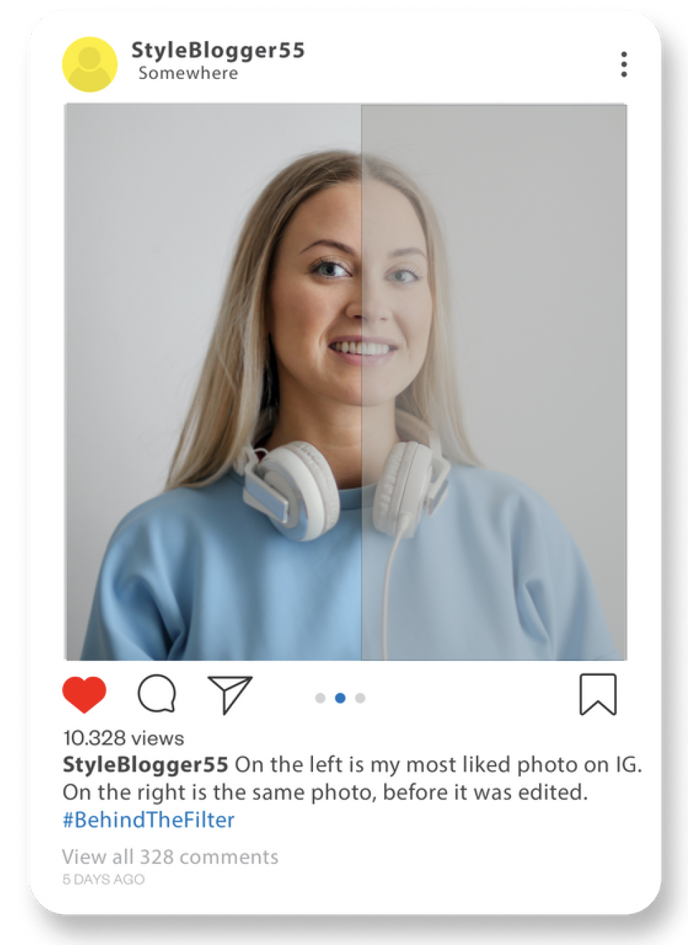Raise awareness of the filtering and alterations that typically occur before photos are posted by influencers and celebrities